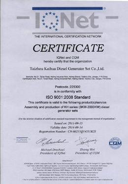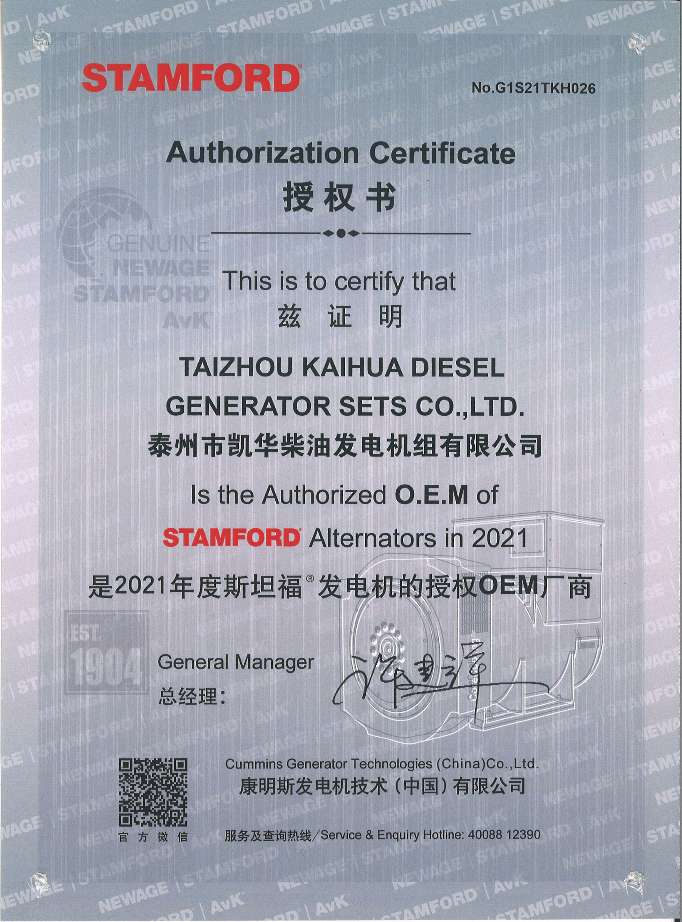 泰州市凱華柴油發(fā)電機組有限公司創(chuàng)建于2003年,是一家集柴油發(fā)電機組燃氣發(fā)電機組的研發(fā)、生產(chǎn)、銷售為一體的高新技術民營企業(yè),公司座落于“漢唐古郡,淮海名區(qū)”,具有“鳳凰城”美稱的祥泰之州——江蘇省泰州市,地處中國經(jīng)濟最發(fā)達的長三角經(jīng)濟圈,水陸空立體交通,地理位置十分優(yōu)越。公司目前注冊資本金11800萬元人民幣,生產(chǎn)基地占地六十畝,現(xiàn)有各類高素質(zhì)員工一百多名,專業(yè)技術人員達46人,其中高級技術人員16人,年銷售額近6億元。 公司主營產(chǎn)品:3~3000KW陸用柴油發(fā)電機組,15~600KW移動拖車電站,12~1000KW船用應急柴油發(fā)電機組,各種靜音型、中高壓、多機并聯(lián)、燃氣等特種機組以及進口系列柴油發(fā)電機組,可滿足不同客戶的一切電力需求,還可滿足用戶不同電壓、不同頻率的要求。凱華公司是康明斯品牌的授權代理商,專業(yè)生產(chǎn)供應康明斯柴油發(fā)電機組。